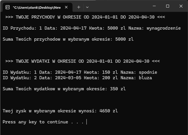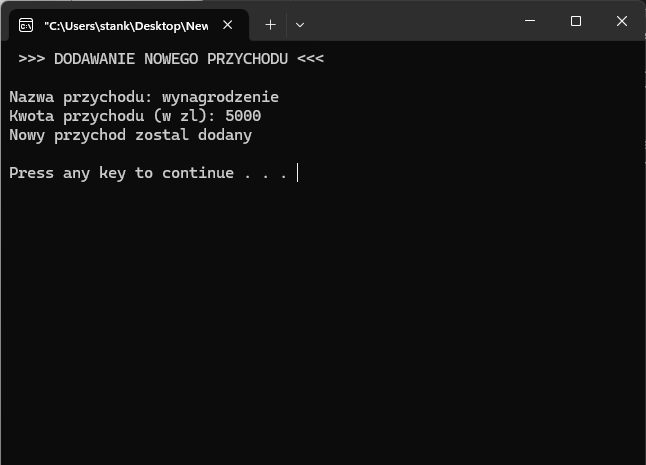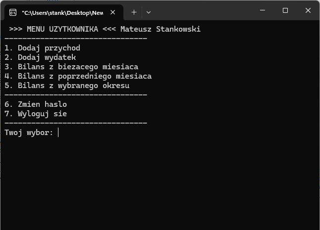 Personal Budget to aplikacja konsolowa dająca możliwość zarządzania swoimi finansami. Posiada panel rejestracji i logowania. Po zalogowaniu użytkownik ma dostęp do takich opcji jak: dodanie przychodu lub wydatku, sprawdzenia bilansu w bieżącym lub poprzednim miesiącu, a także w okresie wybranym przez użytkownika. Aplikacja posiada również możliwość zmiany hasła.