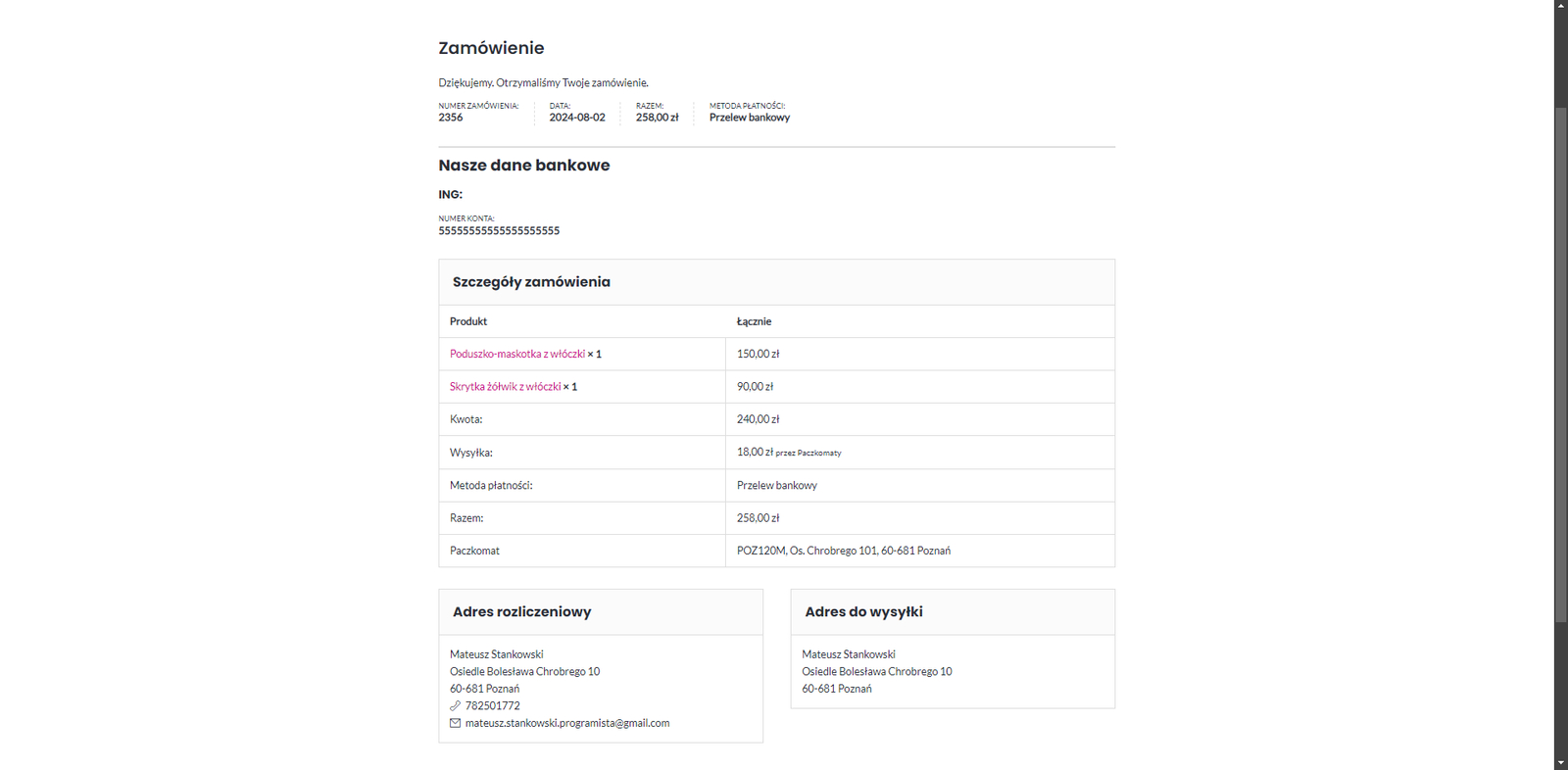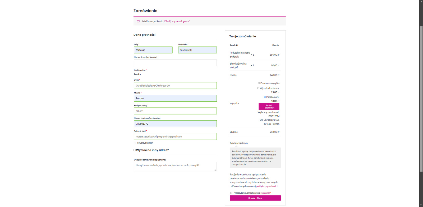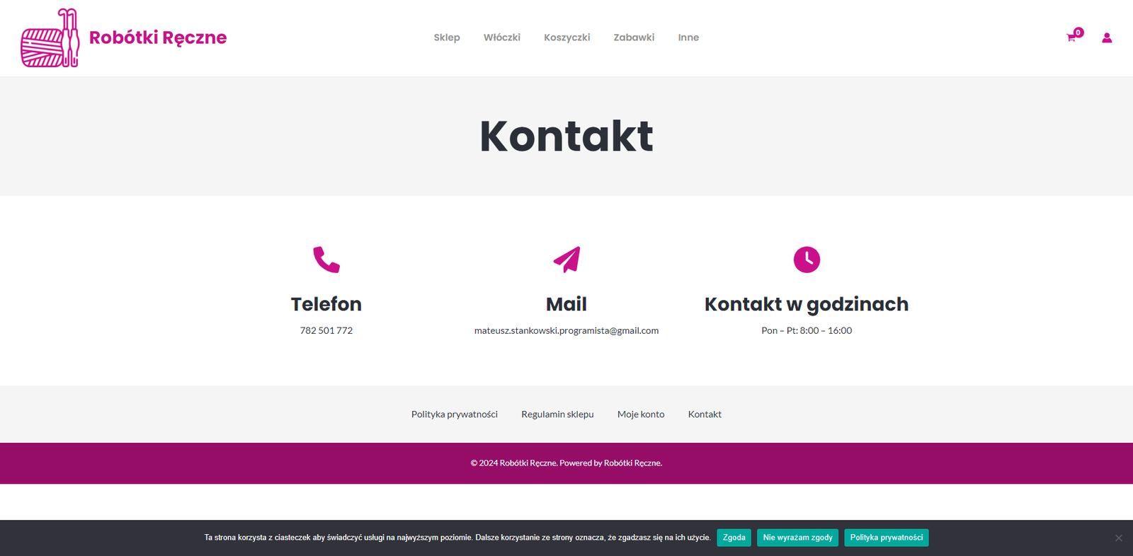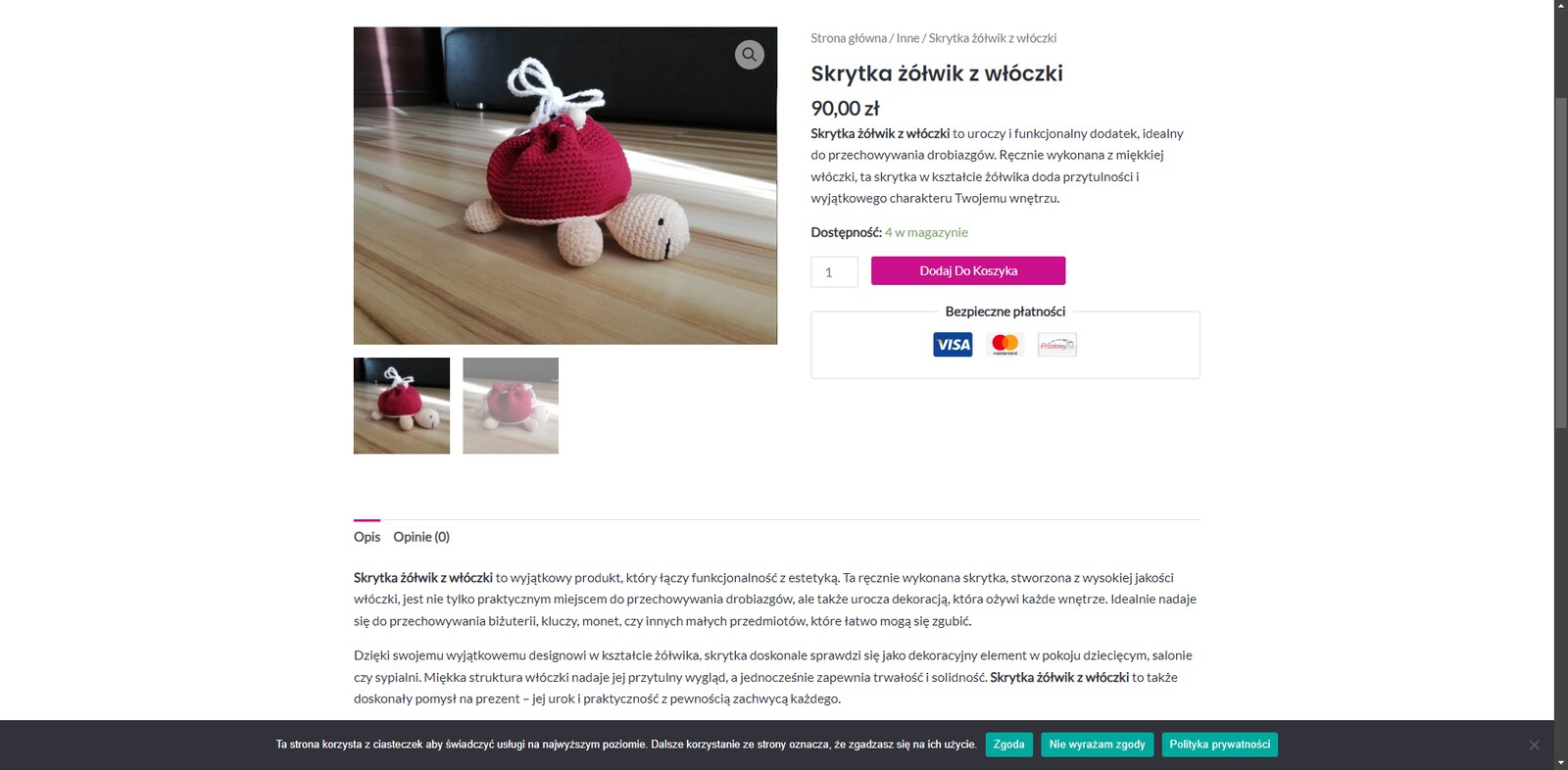 Sklep został wykonany za pomocą WordPress + WooCommerce.